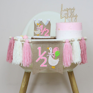 ins流苏横幅半岁可爱白鹅生日流苏横幅六个月生日帽派对生日装饰