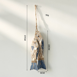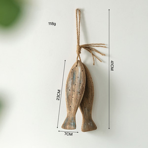 地中海创意复古做旧壁挂饰品乡村年年有鱼木质仿古雕刻小鱼串大号
