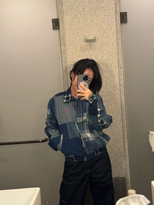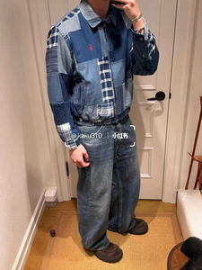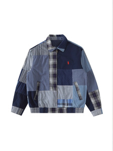 外贸跨境高品质RL双面穿拼接牛仔外套夹克复古水洗做旧老钱男女款