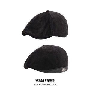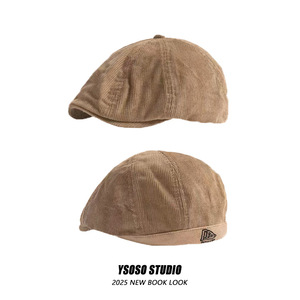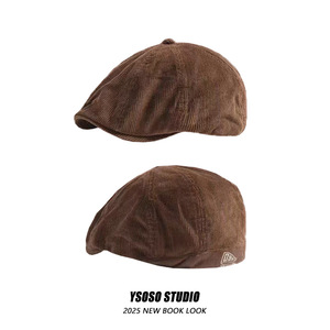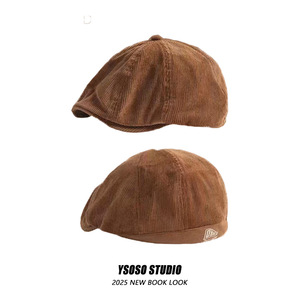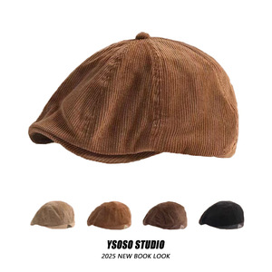 英伦风复古灯芯绒进帽子女春秋季出游百搭显脸小纯色反戴报童帽潮
