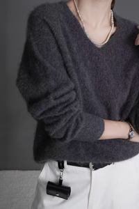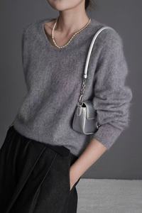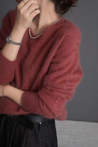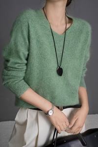 5羊绒高奢!拉绒羊毛羊绒衫柔软不扎岛精无缝圆领针织衫上衣女秋
