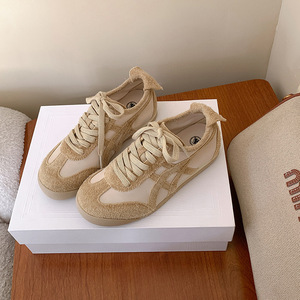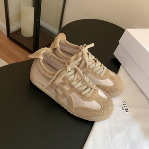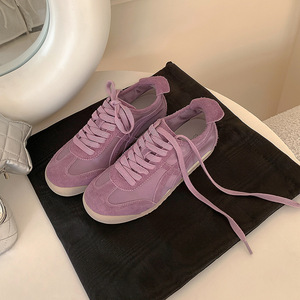 葡萄妈同款内增高磨砂真皮2025春夏拼色复古休闲运动德训阿甘鞋女