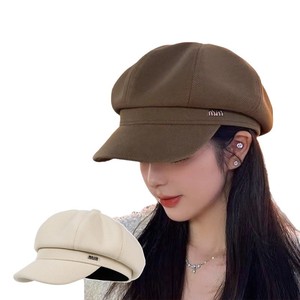 秋季新款呢子八角帽子女字母金属标画家贝雷帽复古云朵帽小众百搭