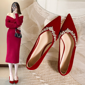 ZHR高跟鞋女2025新款新娘中式婚鞋红色敬酒两穿尖头高跟鞋ins单鞋