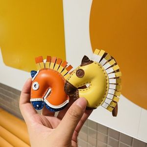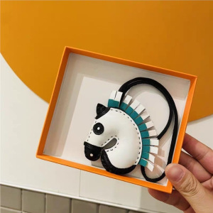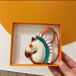 H家新款斑马头真皮挂件手缝独角兽挂饰创意车钥匙扣女真皮车吊饰
