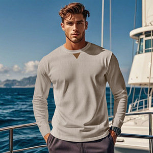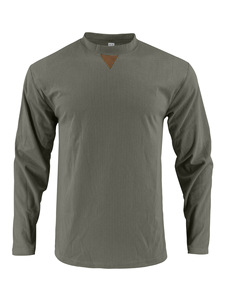 亚马逊2025跨境新款男士户外百搭休闲灯芯绒上衣纯色圆领拼接长袖