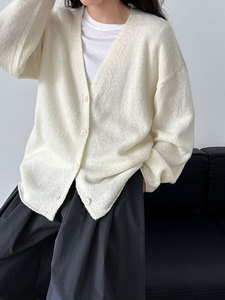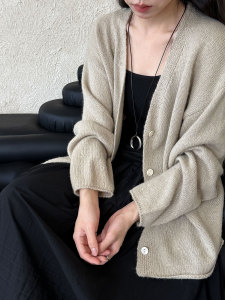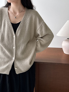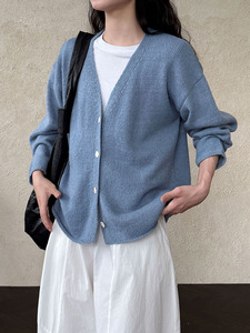 鹿西 10%羊毛V领针织开衫女2025秋季下摆卷边百搭毛衣外套ss765