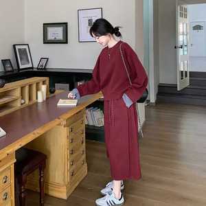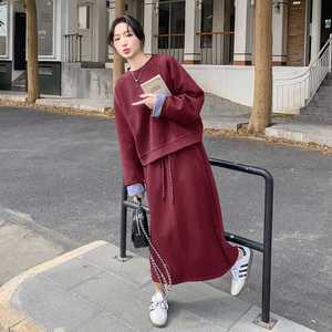 藏青色高级感休闲卫衣套装裙女2025春季韩系宽松运动半身裙两件套