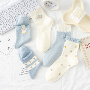 一体机秋冬新品新款袜子女斜条纹英文袜子长袜休闲黑白灰高筒中筒