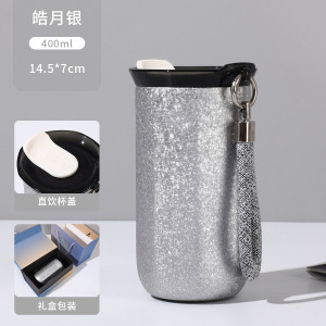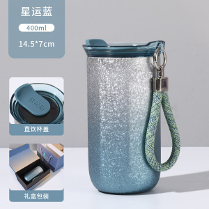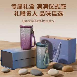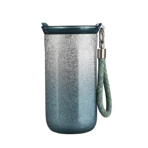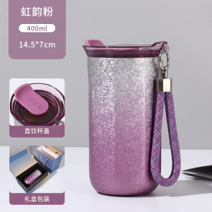 跨境新款覆钛咖啡杯高颜值时尚简约渐变色保温杯便携带提绳随行杯