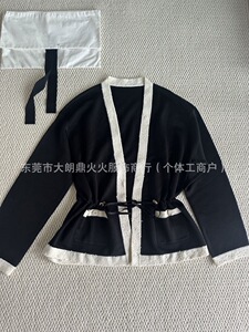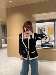 2025新款小香风名媛风撞色V领腰链针织羊毛开衫女气质百搭简约款