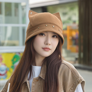 秋冬新款地主帽男女款小恶魔耳朵套头帽痞帅铆钉甜酷风街头瓜皮帽