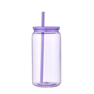 跨境透明彩色PC塑料梅森杯16oz双层塑料水杯户外随手定制水杯图案