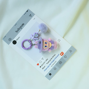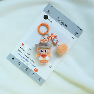 新款植绒牛仔布布汽车钥匙扣公仔饰品挂件小毛球立体萌粒挂饰礼物