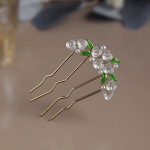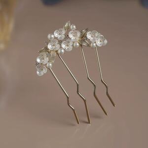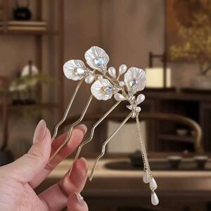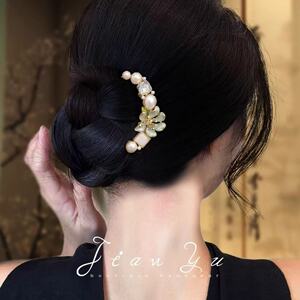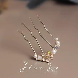 时尚珍珠花花U型发簪高级感古风花朵发杈新中式气质丸子头插梳女