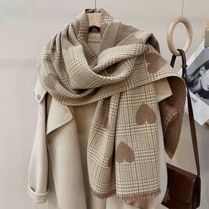 新款秋冬双面大爱心格子小香风围巾网红款百搭款披肩韩系保暖围脖