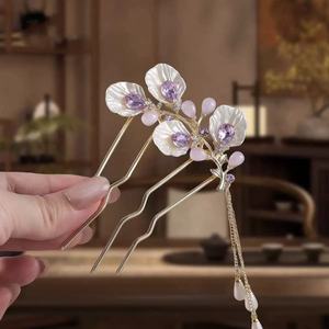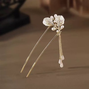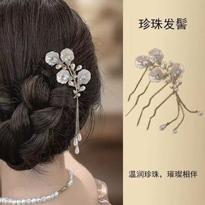 珍珠花朵流苏发簪盘发新中式簪子旗袍汉服发饰后脑勺气质步摇发梳