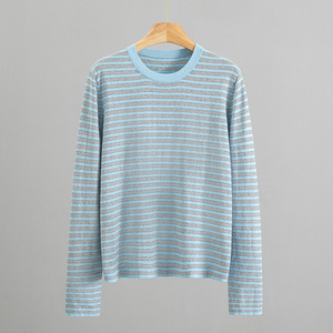 ROW肯豆同款松弛老钱精纺羊绒匹马棉细条纹圆领长袖针织内搭上衣