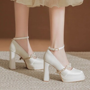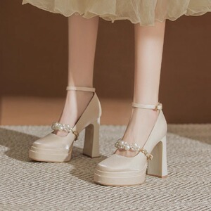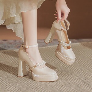 防水台香槟色玛丽珍婚鞋2025春季新款缎面法式高跟鞋粗跟女不累脚