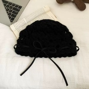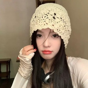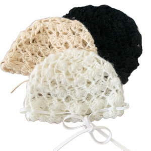 ins日系蝴蝶结镂空钩花包头冷帽女夏薄款显脸小透气毛线帽子ins风