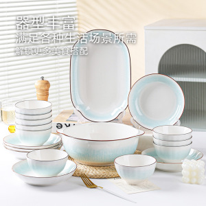 日式窑变高颜值餐盘陶瓷盘子家用碗碟套装高级感高温烤花碟子菜盘