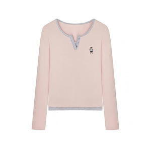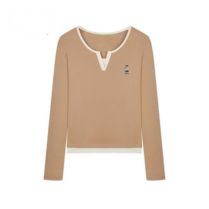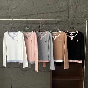 女装长袖T恤2025秋季新款假两件拼接亨利领上衣TTLA257808P