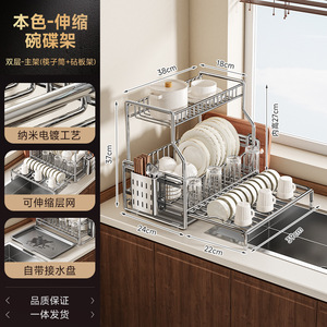 大号银色*双层伸缩碗碟架*主架+砧板架+筷子筒