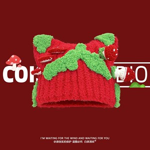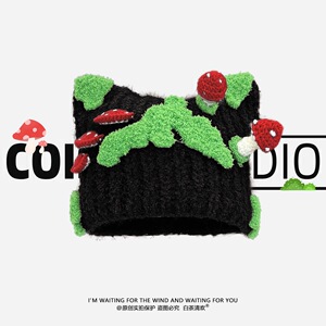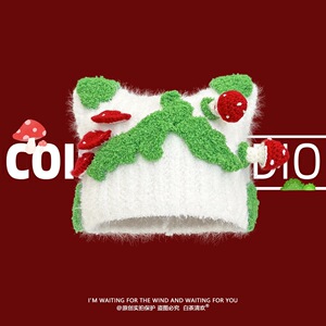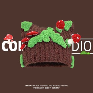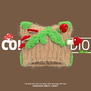 2025新款可爱毛绒小蘑菇针织毛线帽女秋冬加厚保暖护耳百搭包头帽