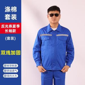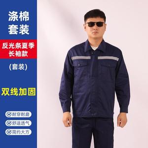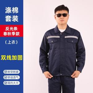 春秋新款涤棉劳保服工作服男耐磨工装套装春秋季印绣logo维修工服