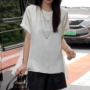 时尚女装高级感休闲拼接短袖T恤女夏季新款大码胖MM宽松显瘦上衣