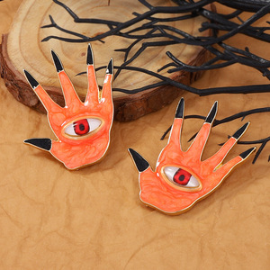 跨境欧美万圣节个性创意搞怪恶魔之眼合金滴油五指耳钉小众女配饰