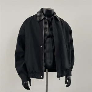 美式复古潮牌假俩件夹克男春秋季高街短宽外套休闲拼接百搭夹克男