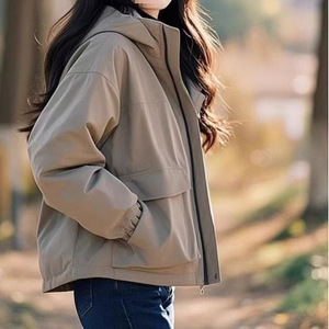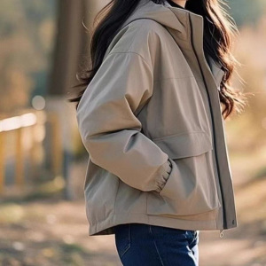 春秋连帽小个子2025今年简约外出休闲外套冲锋衣短款流行新款夹克