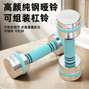 电镀纯钢实心哑铃男士精钢家用杠铃可调节重量拆卸组合健身女微瑕