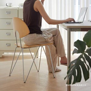 家用中古风餐椅高级感复古椅子实木靠背书桌椅设计师可叠放网红椅