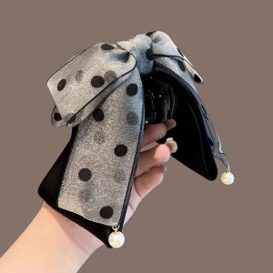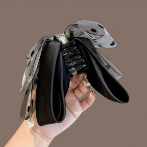 网纱波点蝴蝶结马尾夹