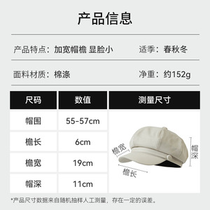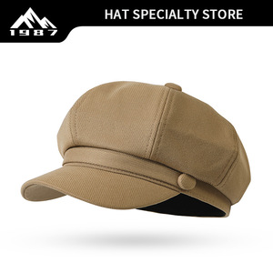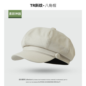 韩版简约百搭春秋文艺气质八角帽个性斜纹英伦风宽檐显脸小报童帽