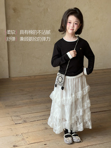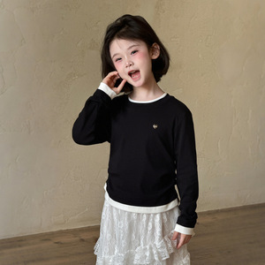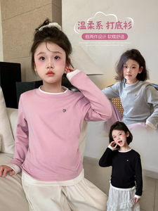 图图小象女童T恤2025秋季新款儿童假两件打底衫亲子软糯舒适童装