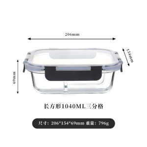 长方形1040ml三分格