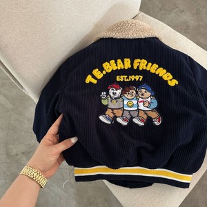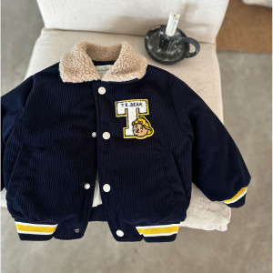 儿童灯芯绒外套2025秋冬新款男女童加绒加厚棉衣宝宝卡通翻领棉服