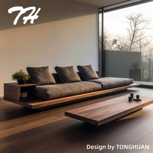 实木沙发原木小户型沙发客厅现代简约单人沙发侘寂风民宿实木家具