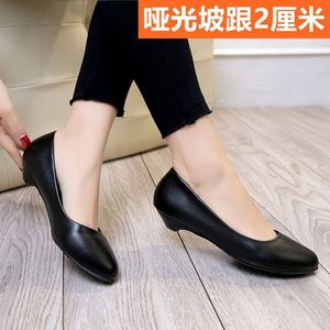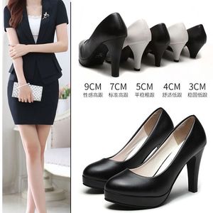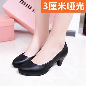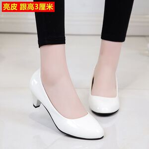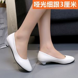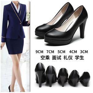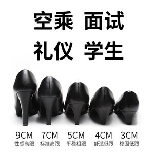 学生礼仪空姐高跟鞋女细跟中跟黑色面试职业工作大码粗跟圆头皮鞋