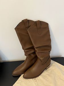 尖头复古美拉德靴子女2025春季新款显瘦堆堆靴高筒西部牛仔骑士靴