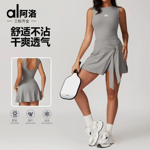 ALO欧美假两件防走光运动休闲连衣裙显瘦绑带设计百搭yoga网球裙