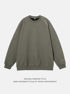 潮牌撞色字母刺绣重磅圆领卫衣男秋款分割结构套头衫宽松廓形外套