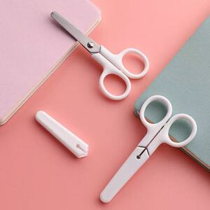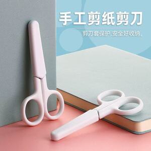 无印风带保护套便携剪刀学生美术小剪子儿童圆头安全手工剪刀批发