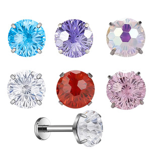 F136钛合金爆闪渐变烟花切耳蜗钉人鱼姬烟花切锆石耳骨钉百搭耳钉