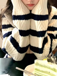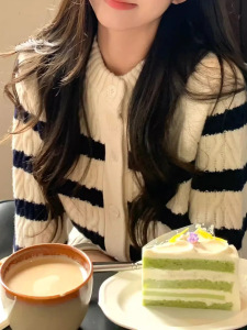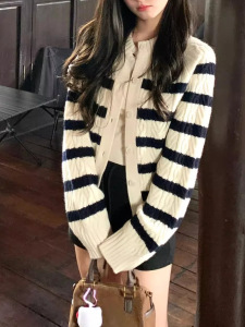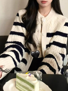 温柔风条纹毛衣开衫女秋冬2025新款松弛感慵懒软糯针织衫短款外套