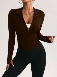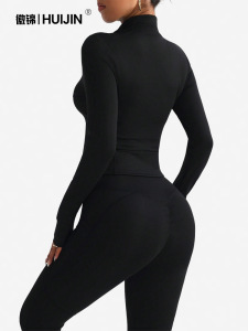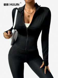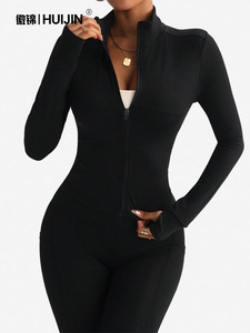 跨境速干瑜伽外套运动户外修身立领新款拉链瑜伽服上衣女式夹克