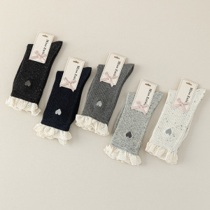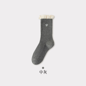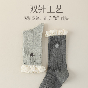 花边袜子女公主袜刺绣点子纱双针洛丽塔吸汗透气黑白灰日系学院风